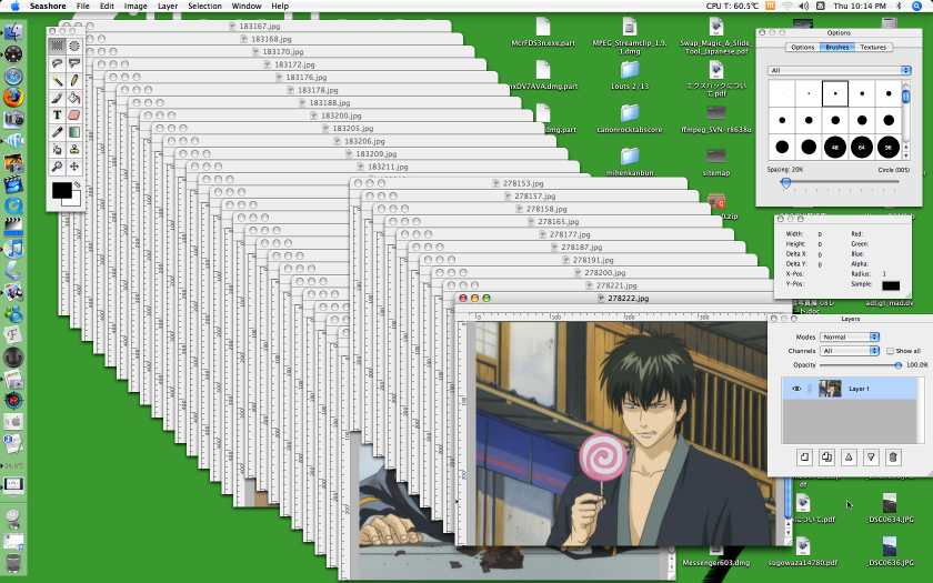 煙を求める副長と同じ気分に浸る為、タバコのストックは切れたまま。 「銀魂、このあとすぐ!」 っていうのがキンタマって聞こえたのは、私だけでいい。 アニメの方が原作に追いついてきているのが心配ではあるけれども、おかげで来週天下一武道会みたいな展開が見られるのは嬉しいことです。 …と思ったら、終わりの頃にちょっとやったのは次回予告じゃなかったのね。 本当に次回やるのは海老蔵が流れてくるやつとオリジナルだそうな。 (ソースはWikipedia) ともあれ終わってすぐにコンビニへ。 DMCの新刊をレジに出しながら店員の後ろの棚を見ると、いつもの場所にいつものが見つからない。 一瞬焦った上に 「キャスターで!」 って言いそうになったけど、パッケージデザインが変わっただけでした。 あんまりにももえもえしたので画像拾ってきてPC壁紙製作中。 一気に開いたら、なんかウイルスみたいになった。 こんなウイルスだったらかかってもいい。 デスクトップを整理した方がいいということには気付いています。 けど、うっかり要るものまで捨ててしまいそうで怖いんだ。 とりあえず読み込みまでは終わったので、配置は明日考えよう。 それにしてもDMCって、デトロイト・メタル・シティなのかデビル・メイ・クライなのか紛らわしくていかんね。 間に挟まってたチラシでは、根岸がオトメンを絶賛していました。 そういや花ゆめコミックスも同じ出版社だったっけ。 でもコレ逆は無いだろなー。 クラウザーの素顔も知らずに 「こ、これが漢らしい音楽か…」 って手を出してみるってのはアリか。 作中に出てきたら面白いな。 銀魂もDMCもオトメンも関係ないけど、漫画のことを考えていたら、ふとハッピー三国志を読んでみたいと思った。